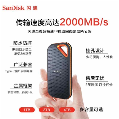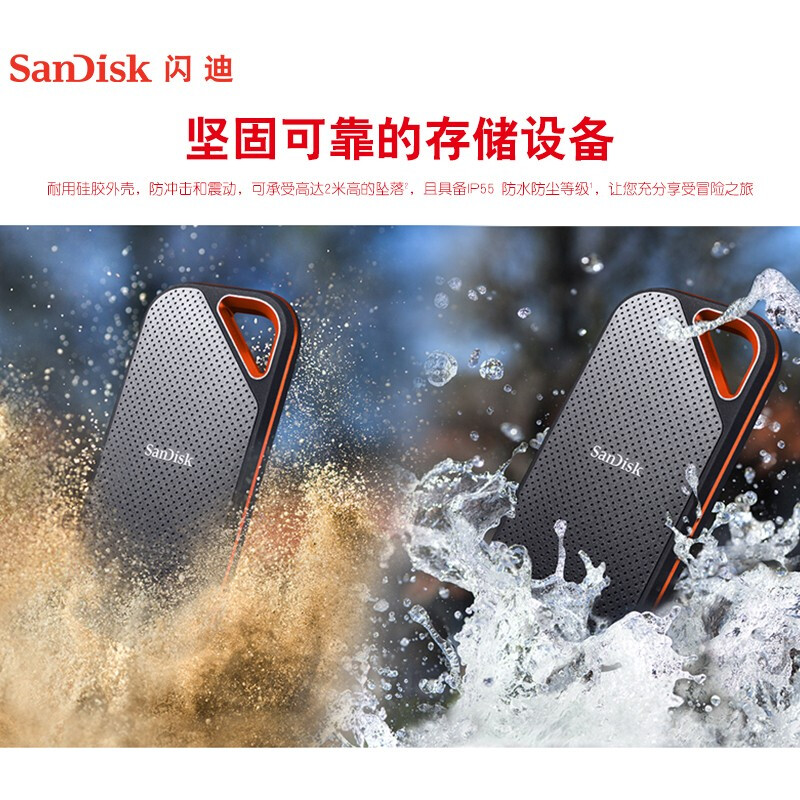 硬盘>>闪迪(SanDisk)2TB Nvme移动固态硬盘(PSSD)E81至尊超极速Pro升级版 高速传输2000MB/秒 IP55等级三防保护