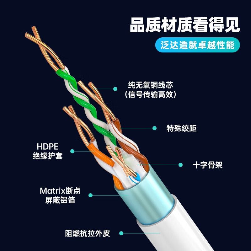 PANDUIT 泛达超六类非屏蔽网线26线规(26线规-蓝色CM阻燃 10米)