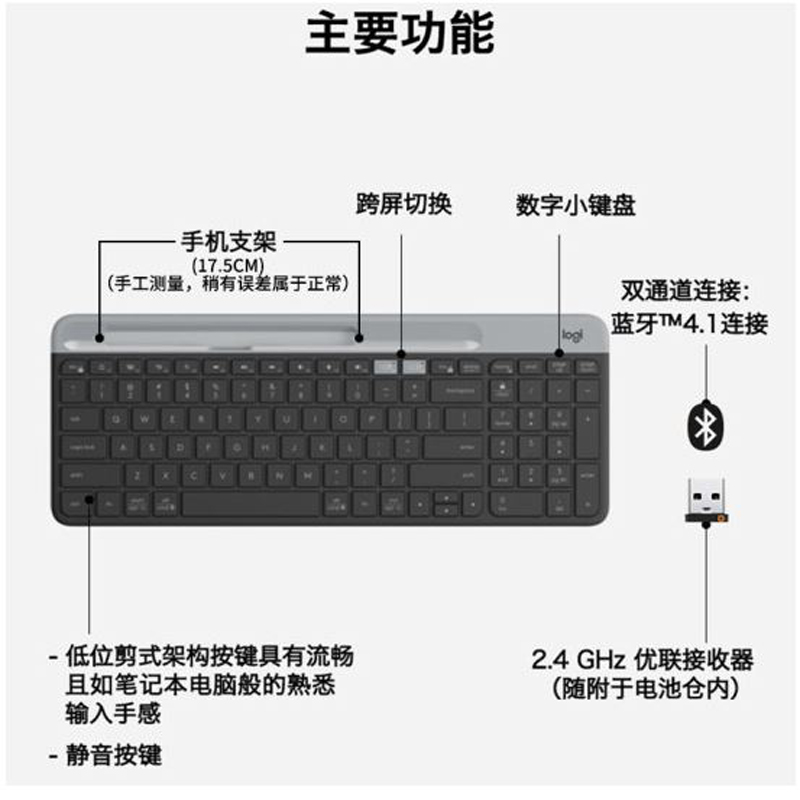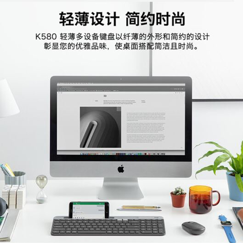 罗技(Logitech)K580无线蓝牙键盘 办公商务家用便携超薄键盘 平板手机通用键盘 K580黑色