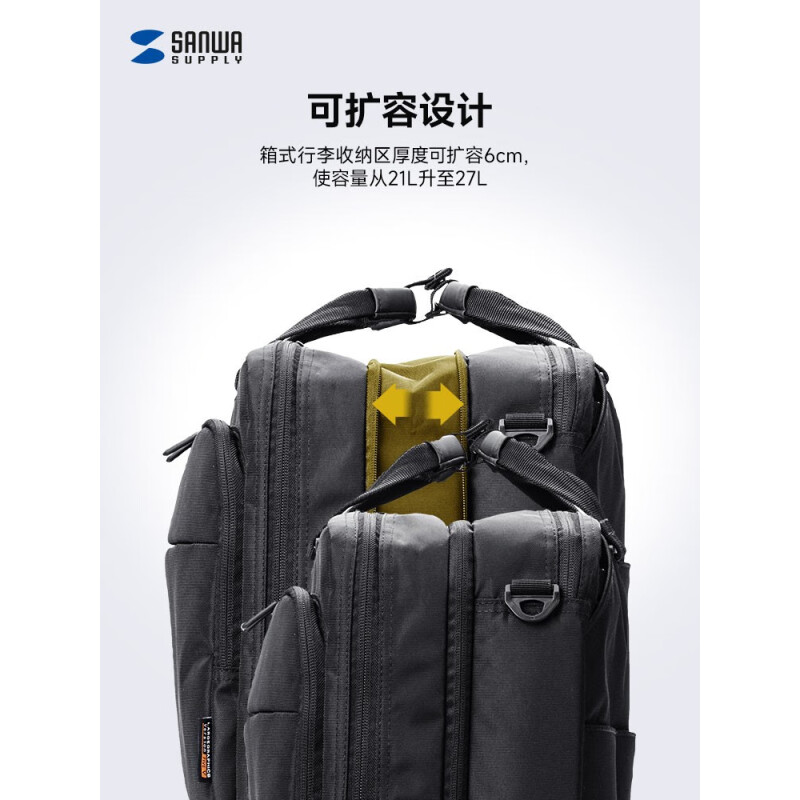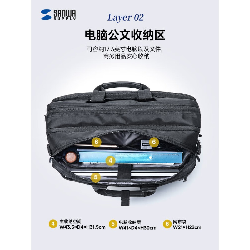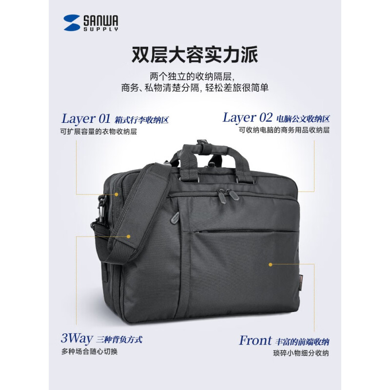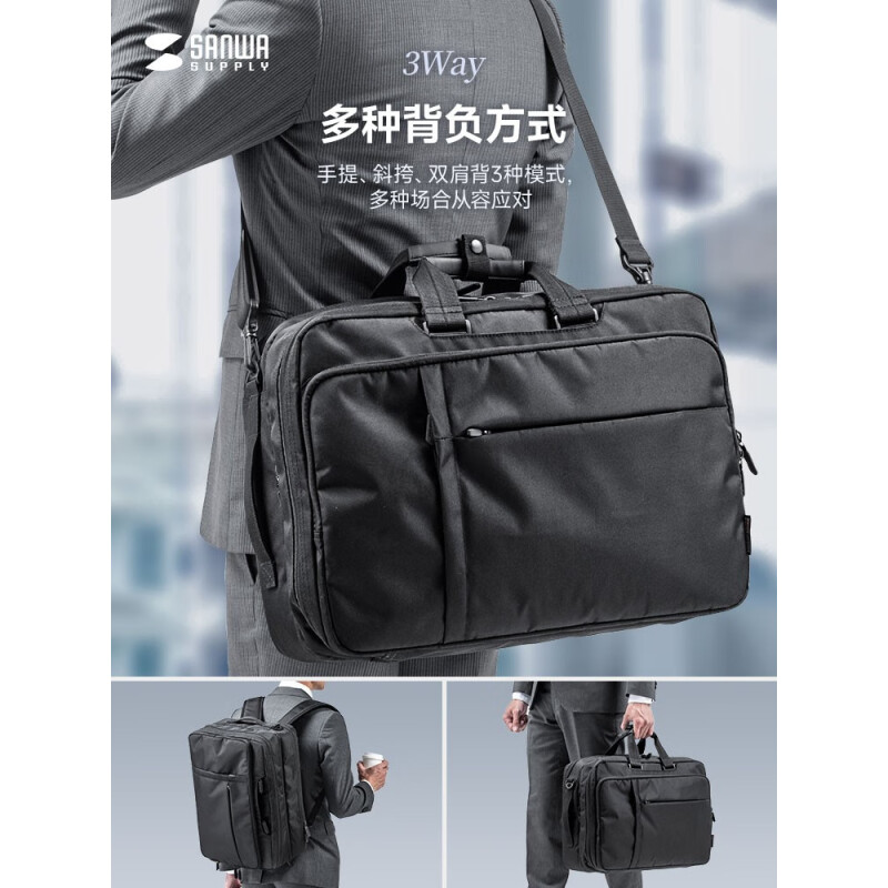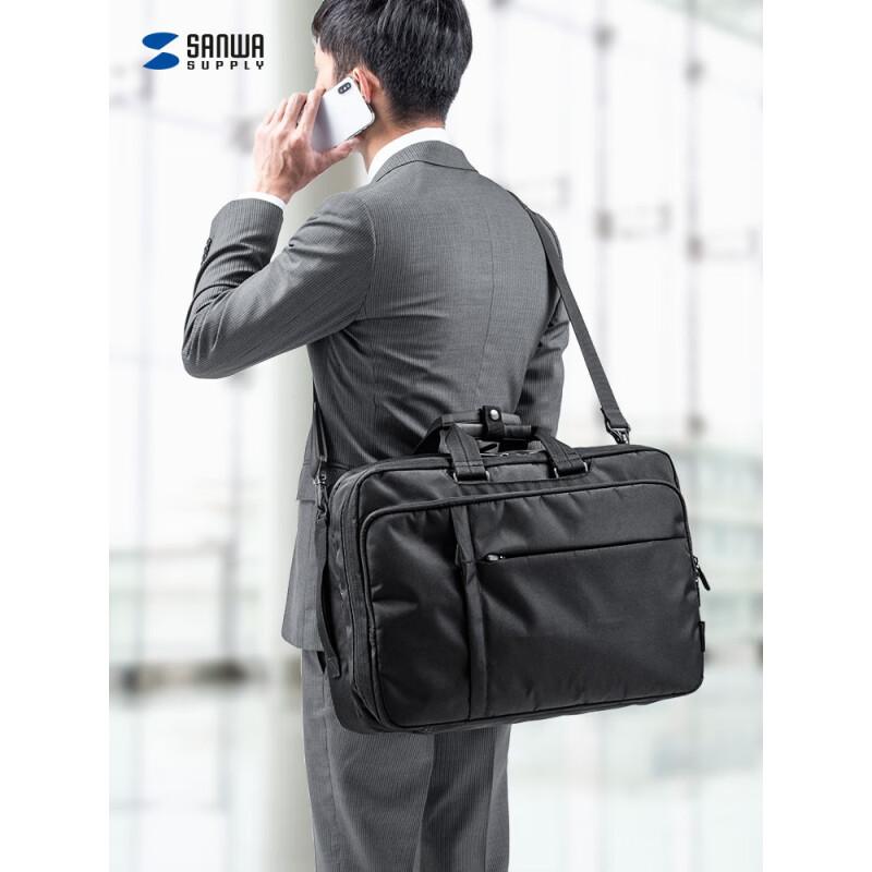 SANWA SUPPLY山业笔记本电脑包 大容量手提包 双肩背包男 单肩包斜跨包 公文包 黑色 17.3英寸
