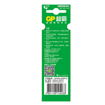 超霸(GP)24G-2ISP10碳性电池7号10节装闹钟/遥控器/手电筒/收音机AAAR03