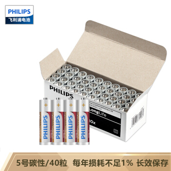 飞利浦(PHILIPS)5号电池碳性电池40粒 适用于低功耗玩具/遥控器/闹钟/计算器等五号AA干电池