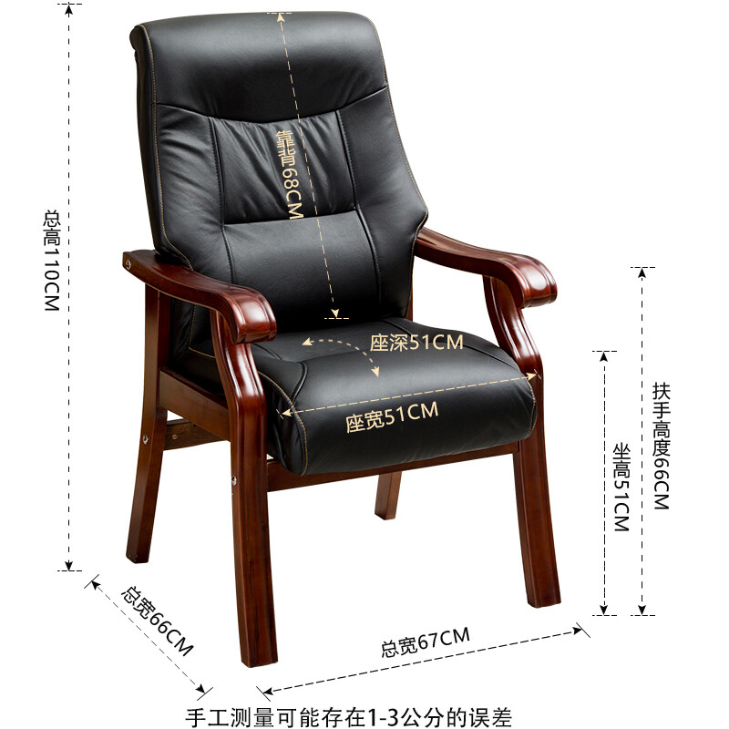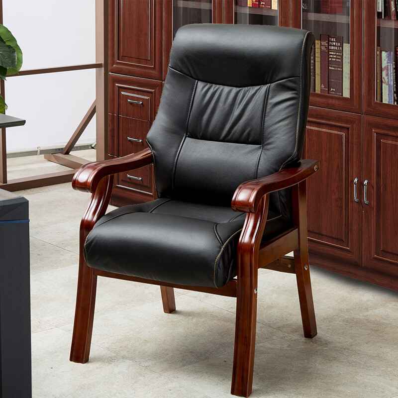 众琛 办公椅会议椅子实木家用真皮牛皮麻将椅子电脑椅老板椅大班椅 黑色皮+小广扶手 环保PU皮