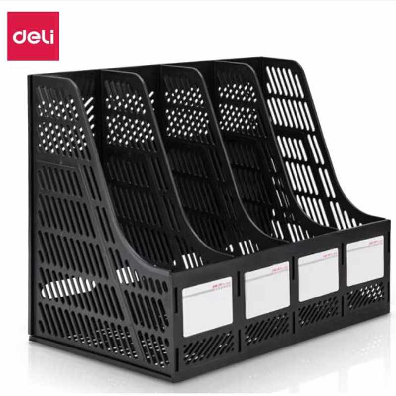 得力(deli) 9848 四联镂空桌面文件框 办公室桌面多层资料架子四栏带标签稳固文件栏 黑色