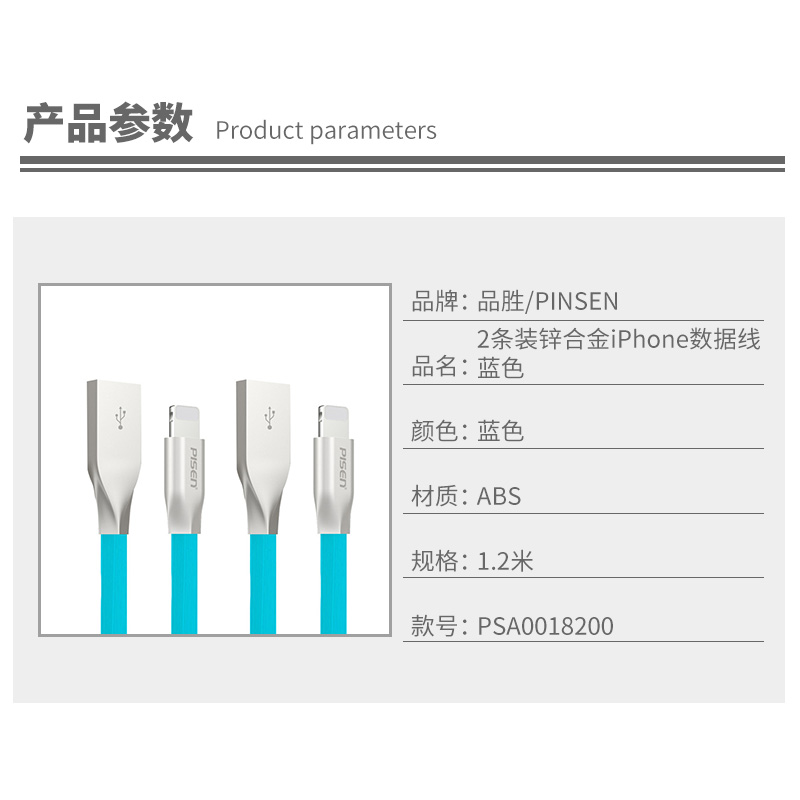 2条装锌合金iPhone数据线蓝色【ABS/蓝色】