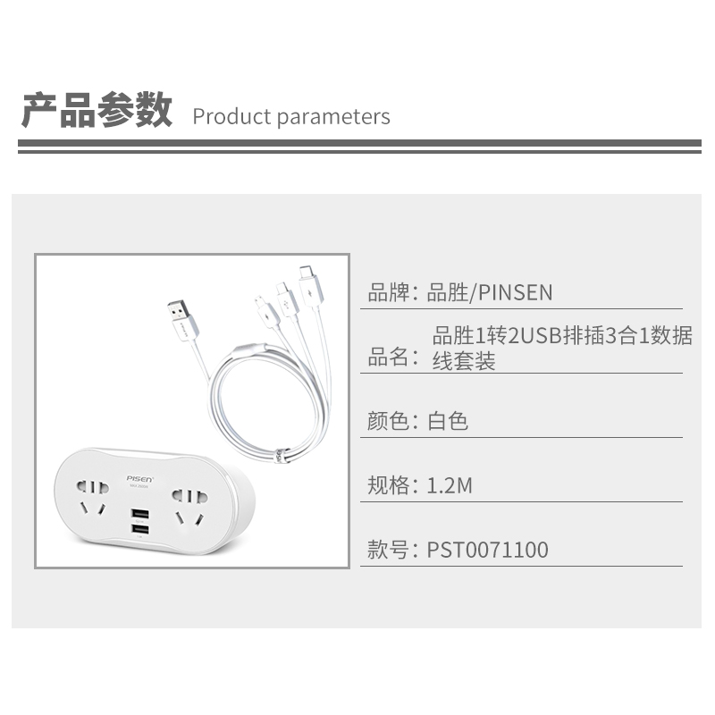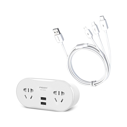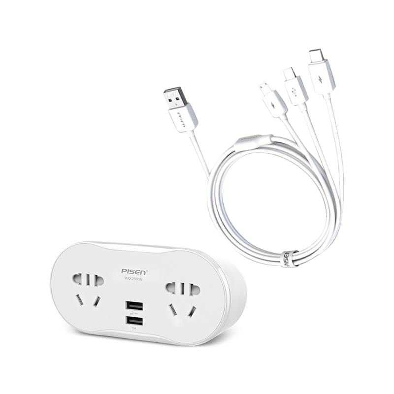 1转2USB排插3合1数据线套装【ABS/白色】