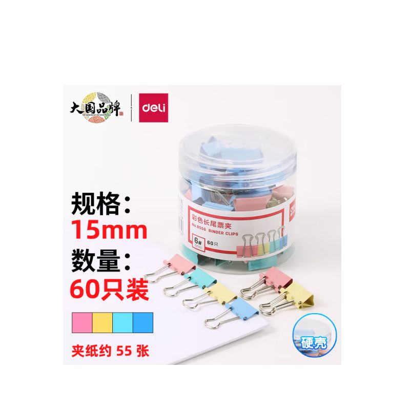得力15mm彩色长尾票夹(筒装)8556.jpg