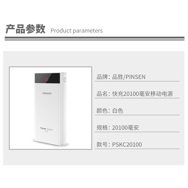 快充2万毫安移动电源【ABS/白色】