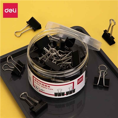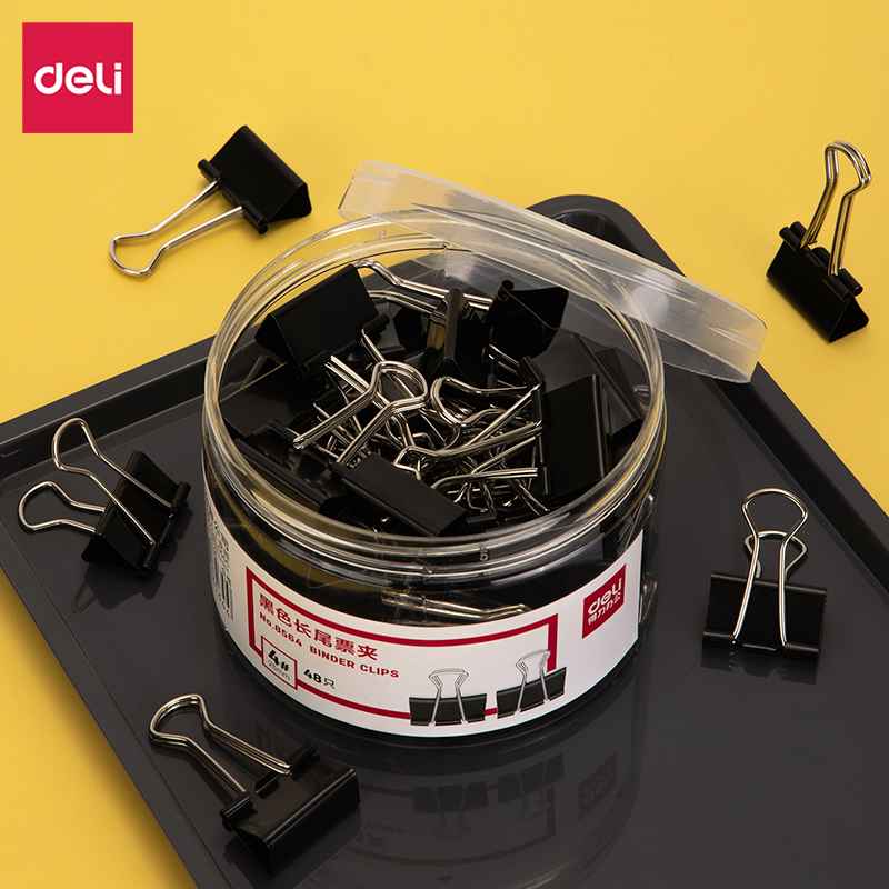 得力8564-4#黑色长尾票夹25mm筒装(黑)(48只/筒)