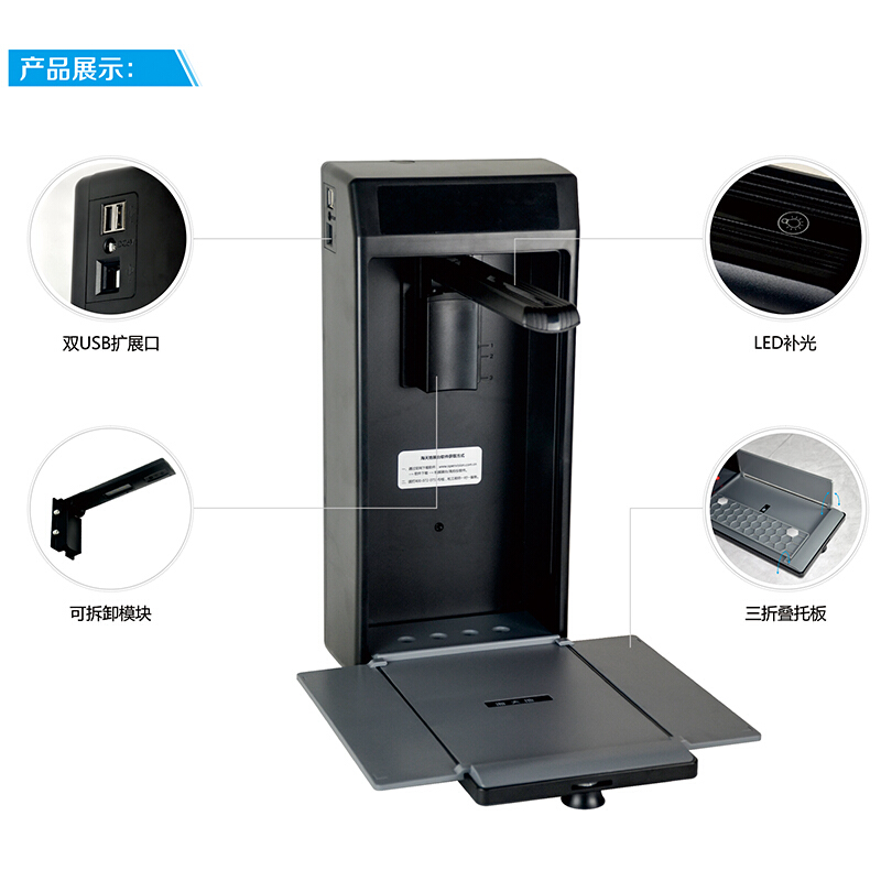 海天地(Soopen)B600 高拍仪视频展示台壁挂式 800万高清像素A4幅画 扫描仪教学办公两用 黑色