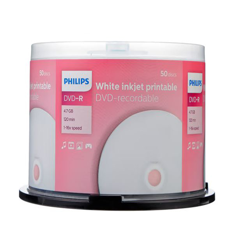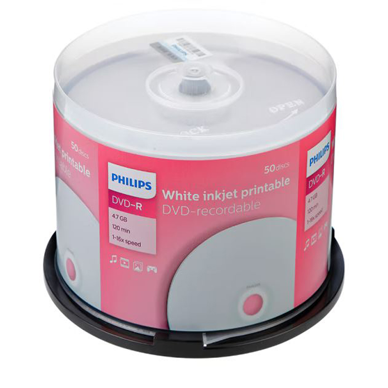飞利浦(PHILIPS)DVD-R空白光盘/刻录盘 16速4.7G 可打印 桶装50片 |
