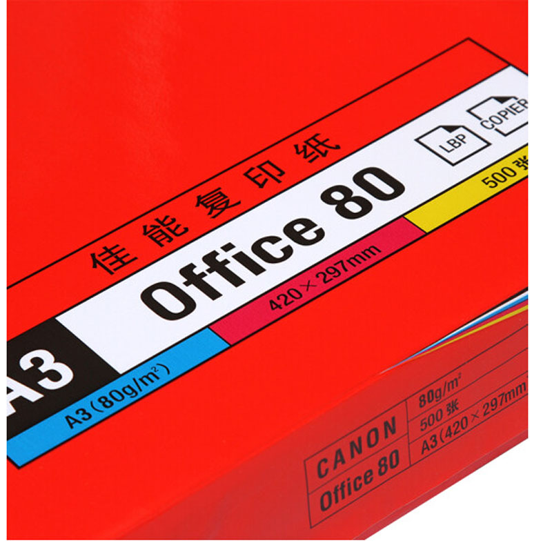 办公用纸>>佳能(Canon) 原装A4复印纸A3复印纸70克 80克办公用打印纸500张/包 A3复印纸 80g(5包/一箱) 佳能复印纸