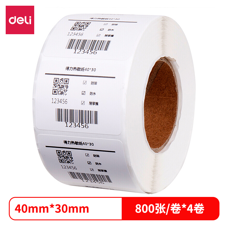 得力12000三防热敏标签纸(40*30mm-800张)(白)(4卷/筒)