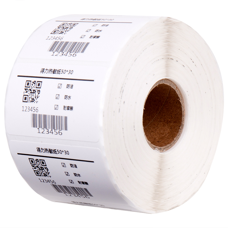 得力12003三防热敏标签纸(50*30mm-1000张)(白)(1卷/筒)