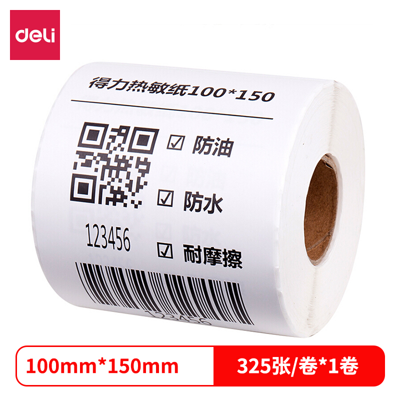 得力12008三防热敏标签纸(100*150mm-325张)(白)(1卷/筒)