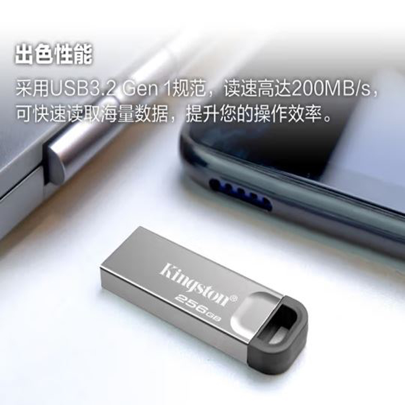 金士顿(Kingston)256GB USB 3.2 Gen 1 U盘 DTKN 金属外壳 读速200MB/s