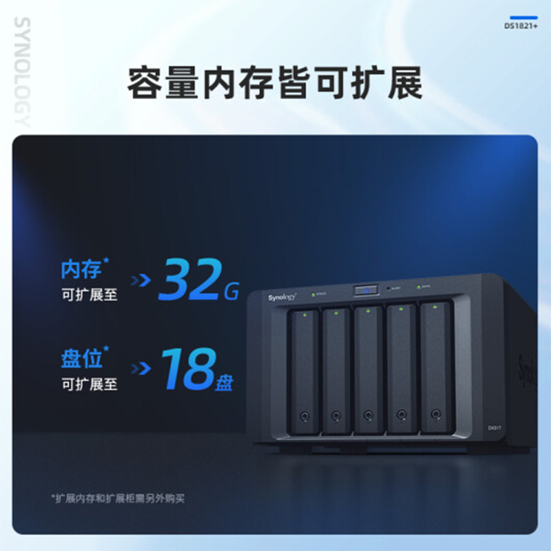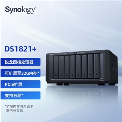 群晖(Synology)DS1821+ 四核心8盘位 NAS 网络存储服务器