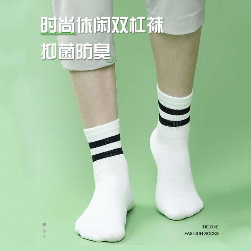 秋冬透气条纹中筒袜 均码 白黑色 袜子