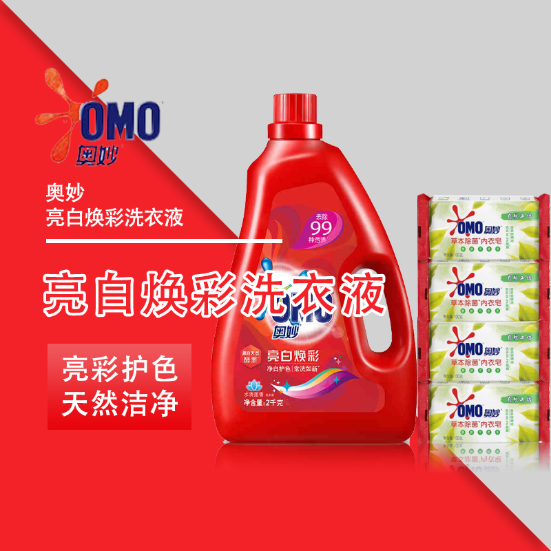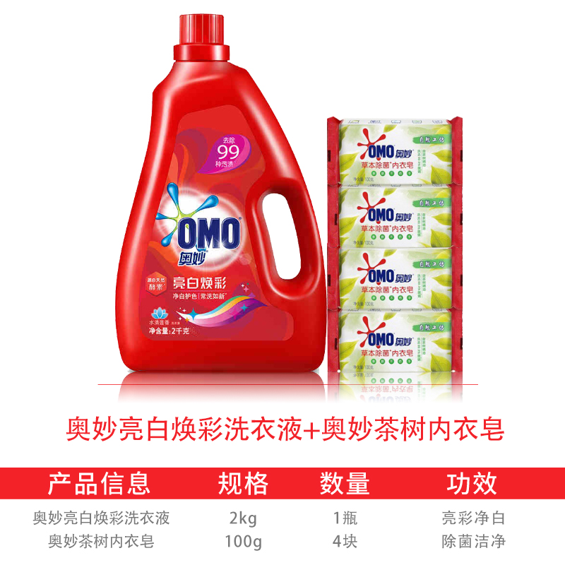 奥妙18亮白焕彩洗衣液4斤+奥妙茶树内衣皂组合