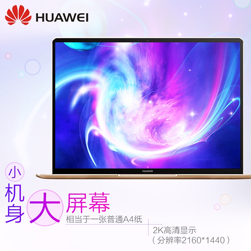 笔记本>>华为笔记本电脑 MateBook X WT-W09 13英寸轻薄微边框2K屏商务笔记本电脑指纹背光金属超极本 金X / i5 4G 256G固态 内配扩展坞